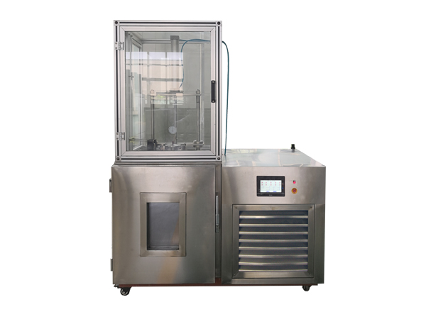 本機(jī)主要由低溫箱、氣動升降系統(tǒng)、試驗裝置等組成。由低溫箱制冷,控溫精度高,代替了早期的干冰制冷,方便實用,操作簡便。四種試驗裝置可供選擇:1、拉伸耐寒試驗裝置:可進(jìn)行符合GB 6035《硫化橡膠拉伸耐寒系數(shù)的測定》的試驗;2、壓縮耐寒試驗裝置:可進(jìn)行符合GB 6034《硫化橡膠壓縮耐寒系數(shù)的測定》的試驗;3、壓縮永久變形試驗裝置:可進(jìn)行符合GB/T 7759.2《硫化橡膠或熱塑性橡膠 壓縮永久變形的測定 第2部分:在低溫條件下》的試驗;4、低溫脆性沖擊試驗裝置:可進(jìn)行符合GB/T 1682《硫化橡膠低溫脆性的測定 單試樣法》、GB/T15256《硫化橡膠低溫脆性的測定 多試樣法》以及GB/T 5470《塑料沖擊法脆化溫度的測定》的試驗。